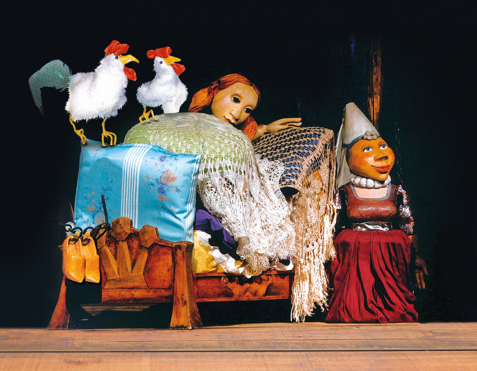 Ein Puppenspiel um Aufbruch, Mut und erste Liebe mit vielen Kissen, zwei hungrigen Hühnern und einer Erbse.