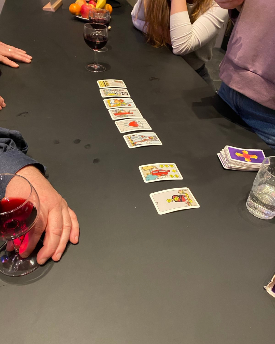 Mit Getränken, Gesprächen und Tarot-Karten klang der Tag aus – ein leichter, spielerischer Moment, der gut zu einem Haus passt, in dem Fantasie und Interpretation so viel Raum einnehmen.