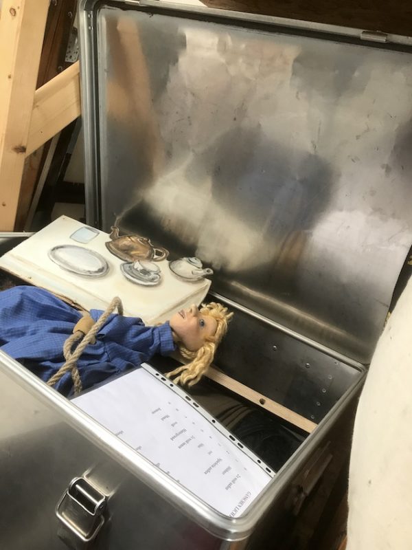 Mittlerweile kann man unseren Kisten deutlich ansehen, was sie uns bisher für treue Dienste geleistet haben. Mit Sicherheit werden sie auch dieses Mal all unsere Figuren gut gesichert ins Europäische Hansemuseum geleiten. Dort werden vom 3. bis 18. Oktober die Stücke "Die Abenteuer der kleinen Gans Adele", "Die Kitzelspinne" und "Der gestiefelte Kater" zu sehen sein. Außerdem geben wir in "Poesie der Theaterfiguren" einen Einblick in die Vielfalt der Kunstform Figurentheater. Hier haben auch Figuren aus dem Museumsdepot ihren ganz besonderen Auftritt.