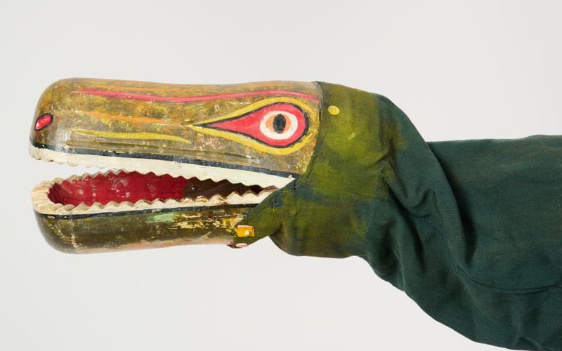 The puppet of the crocodile is a staple of Kasper shows. Unlike the other puppets, its head is hollow. This allows the crocodile to swallow other puppets whole and to clatter its jaw loudly.